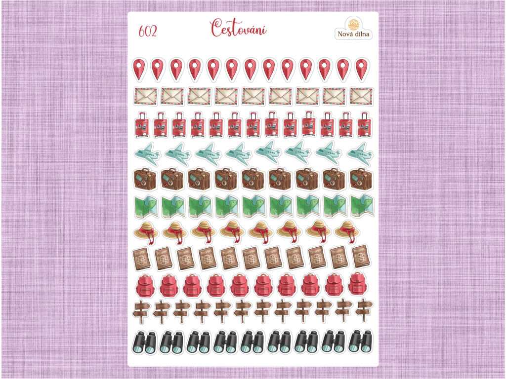 Tématicky arch s ikonami cestování vám pomůže naplánovat i všechny výlety, dovolené a další akce.
