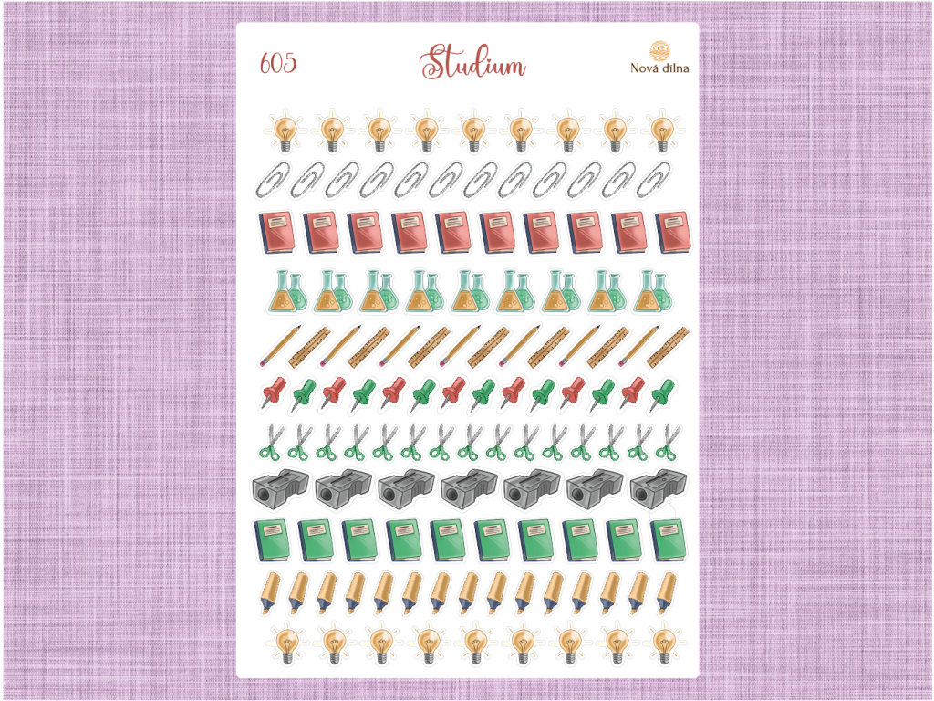 Tématicky arch s ikonami školy a studia se hodí k plánování zkoušek nebo učení. Využijete ho ale i mimo školu, třeba v práci a na naplánování různých důležitých rozhodnutí.