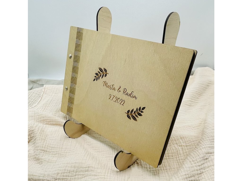 Dřevěný stojan na knihu hostů, na fotky nebo dřevěné cedule
