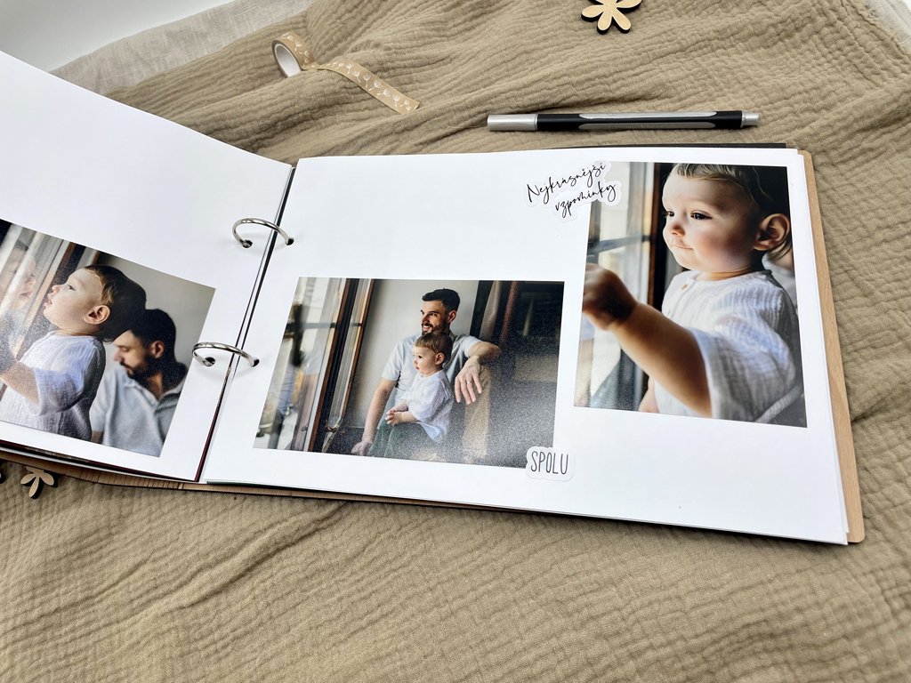Praktická a zároveň luxusní dřevěná ohebná vazba má uvnitř rozevírací kroužky. Do fotoalba můžete tedy cokoliv vložit, nebo prohazovat jednotlivé listy, pokud jste na nějaké fotky při lepení zapomněli.