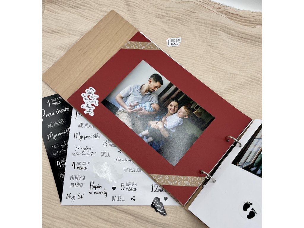 Praktická a zároveň luxusní dřevěná ohebná vazba má uvnitř rozevírací kroužky. Do fotoalba můžete tedy cokoliv vložit, nebo prohazovat jednotlivé listy, pokud jste na nějaké fotky při lepení zapomněli.
