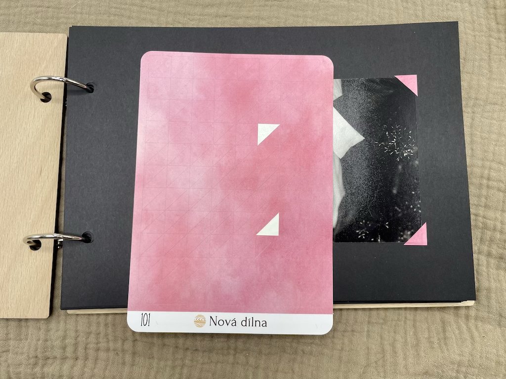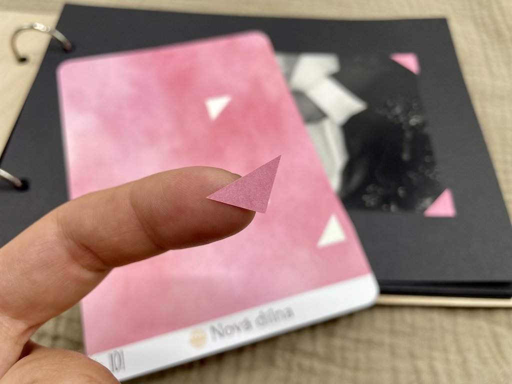 Využijte k přilepení fotek samolepky ve tvaru trojúhelníčků a vytvořte tak fotkám stylové orámování.