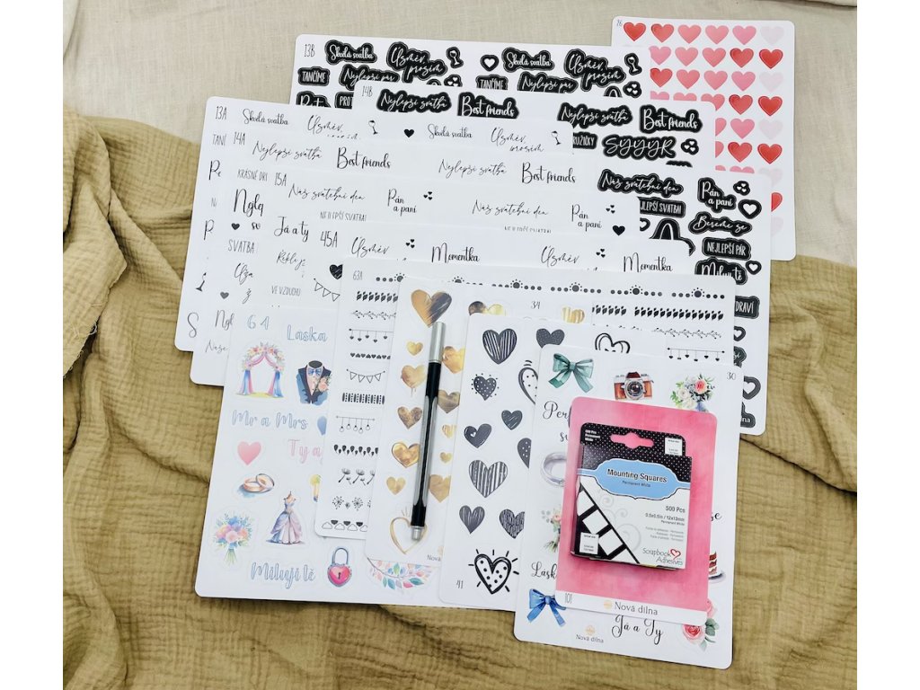 Velká sada svatebních samolepek do knihy hostů na svatbu