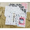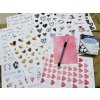 Sada obsahuje celkem devět archy samolepek formátu A4, čtyři archy formátu A5, metalický popisovač ve stříbrné barvě, fotomodelky 500 kusů a růžové fotorůžky