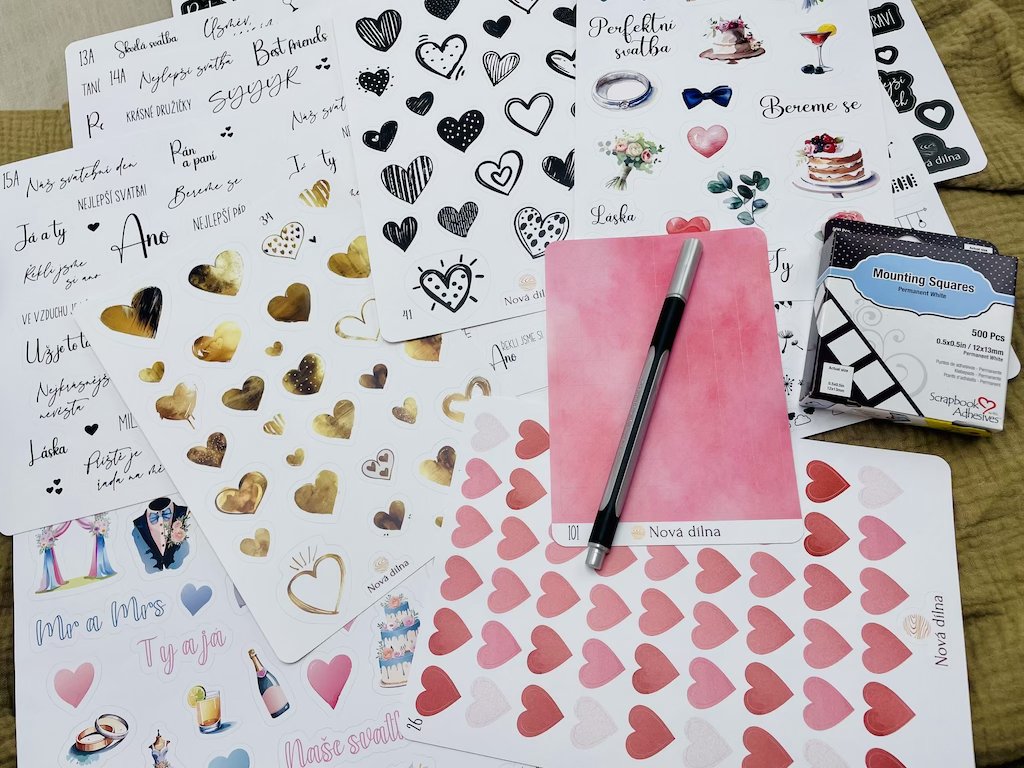 - Samolepky do svatební knihy hostů Láska - bílá varianta