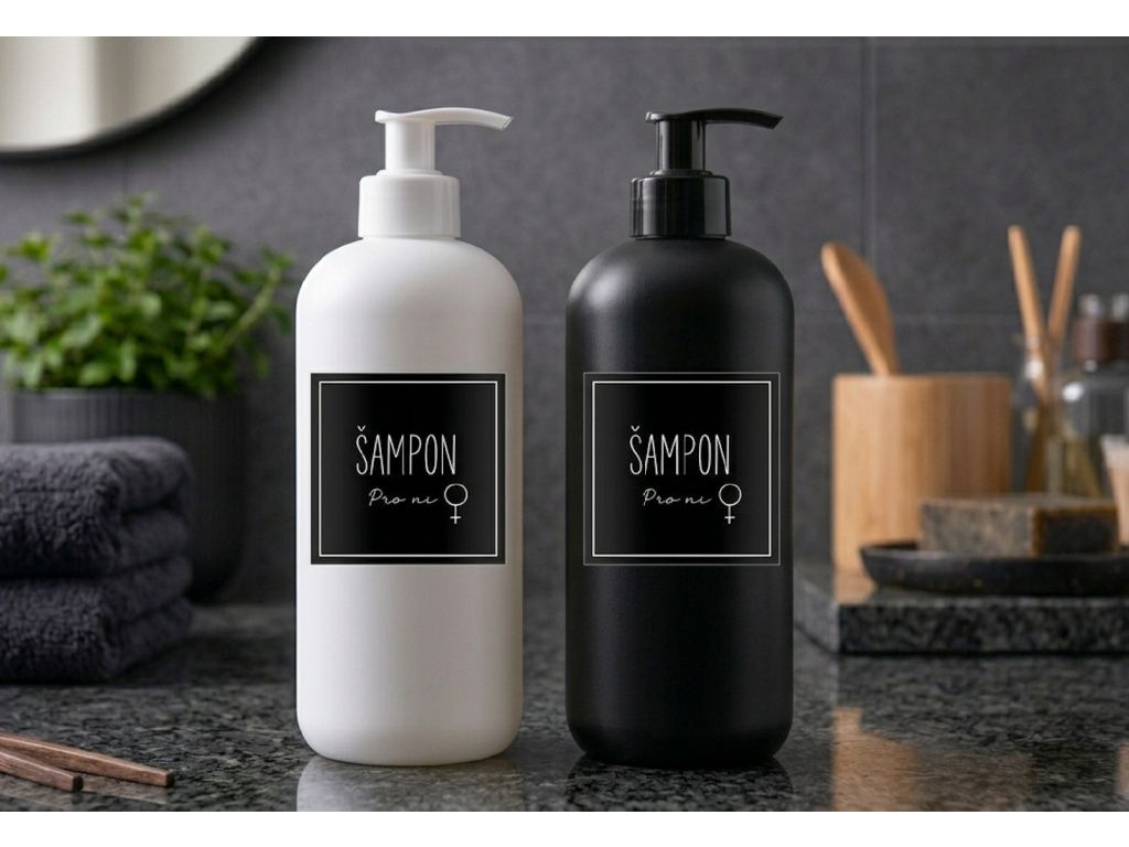 Minimalistické samolepky do koupelny a úklidové místnosti pro organizaci. Nalepte štítky na jednotlivé lahvičky. Díky elegantním samolepkám budete mít přehled a koupelna bude vypadat perfektně vyladěně,
