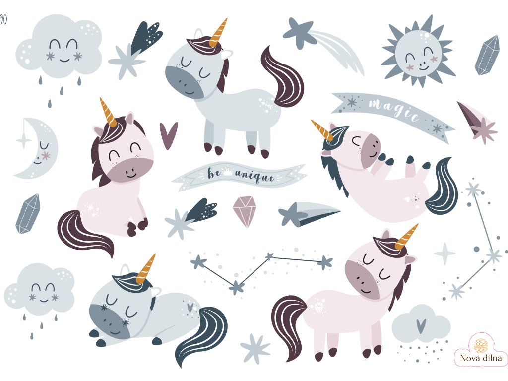 Samolepky s motivy kouzelných jednorožců
