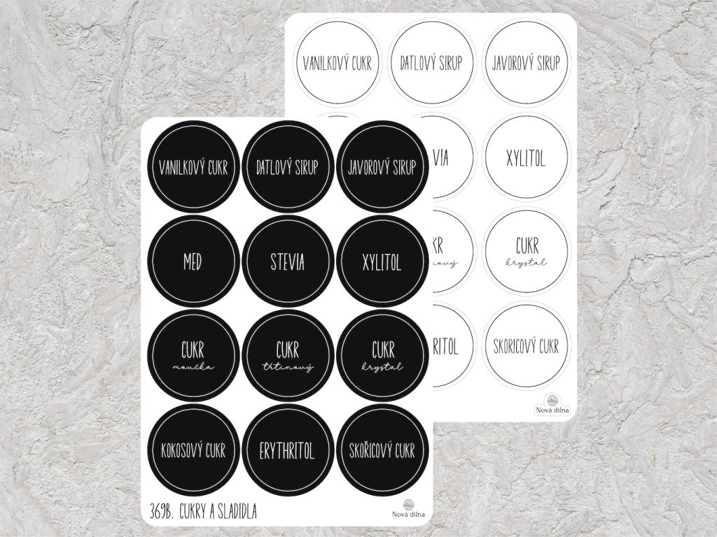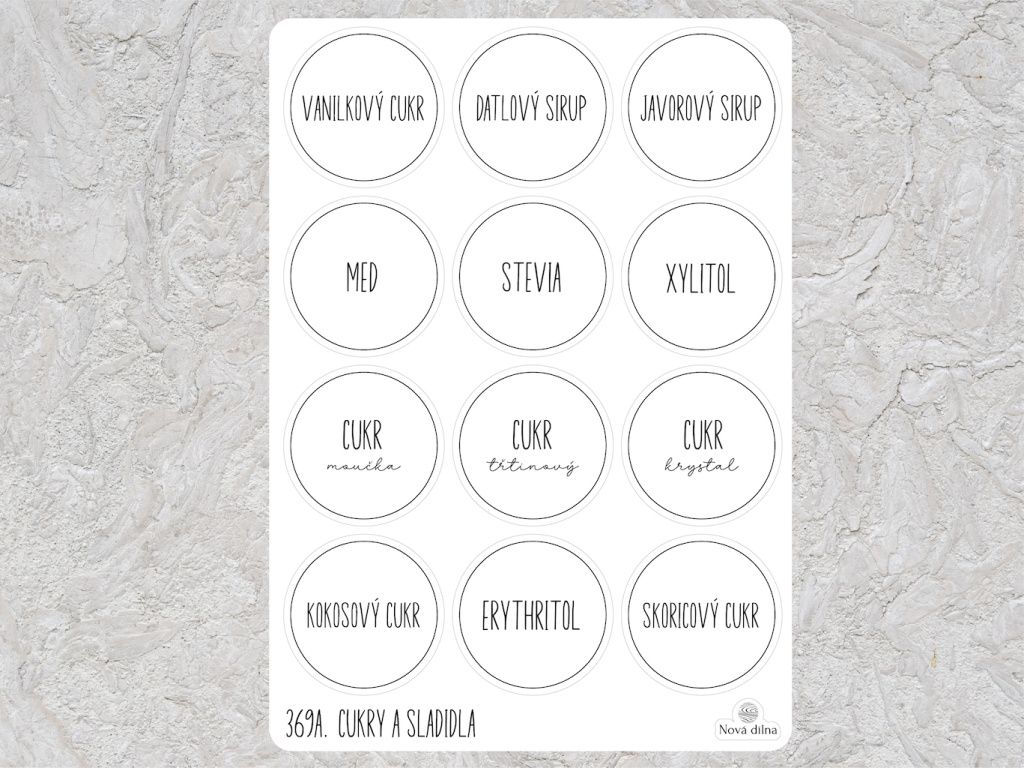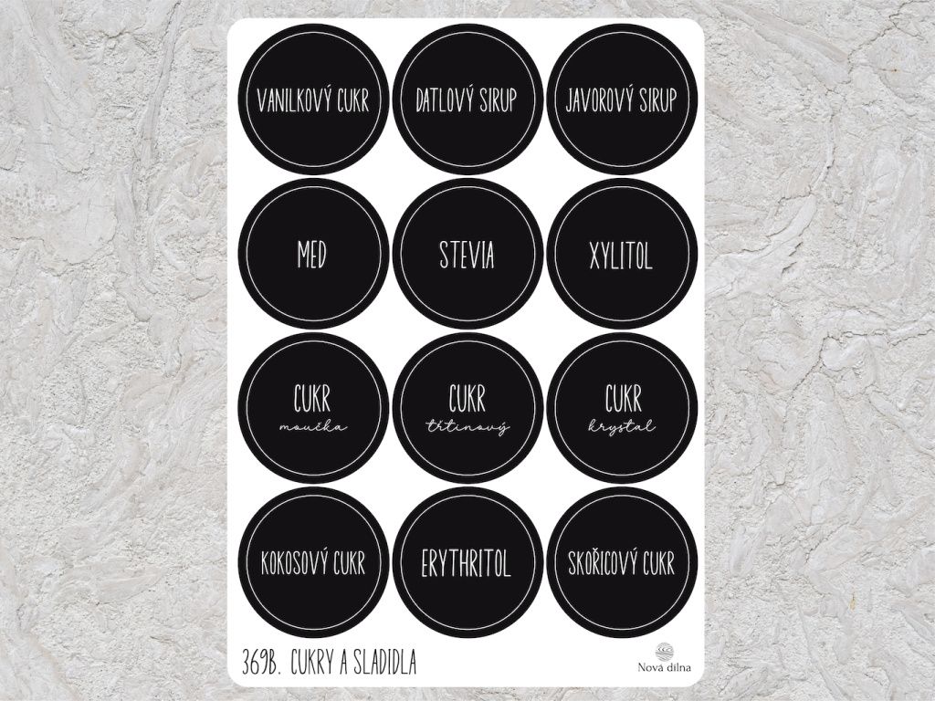 Samolepky na dózy Cukry a sladidla 12ks 60mm kulaté