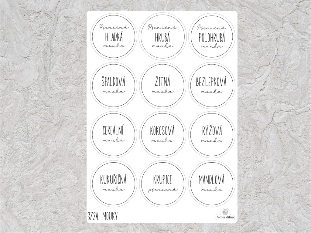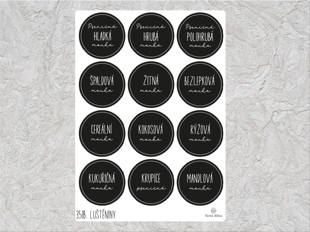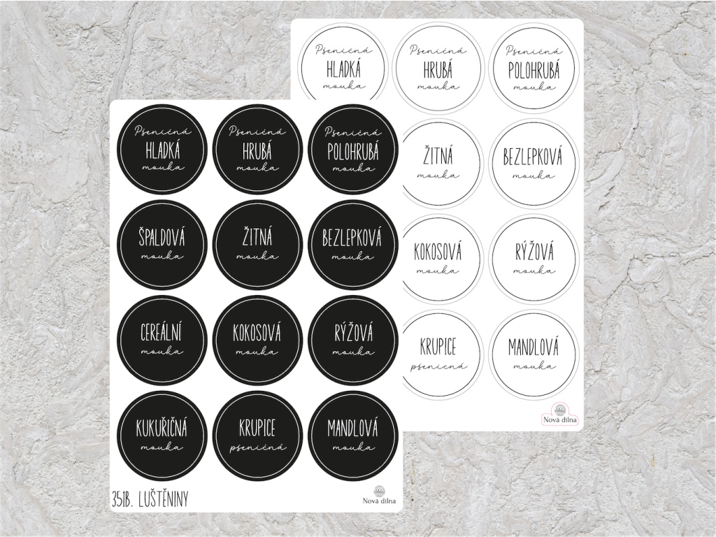 Minimalistické samolepky do kuchyně pro organizaci potravin. Nalepte štítky na jednotlivé krabičky. Díky elegantním samolepkám budete mít o potravinách přehled a kuchyně bude vypadat perfektně vyladěně,