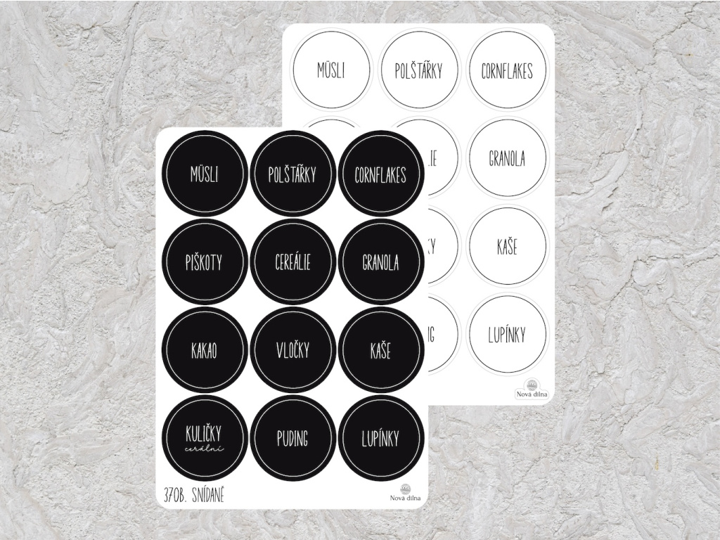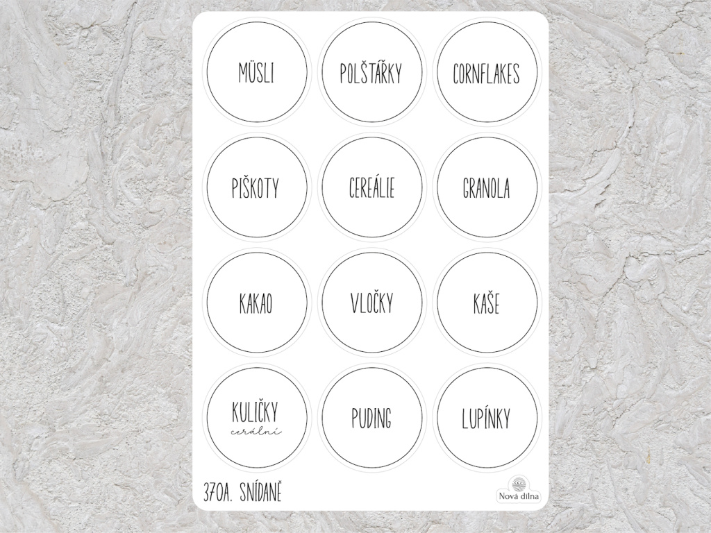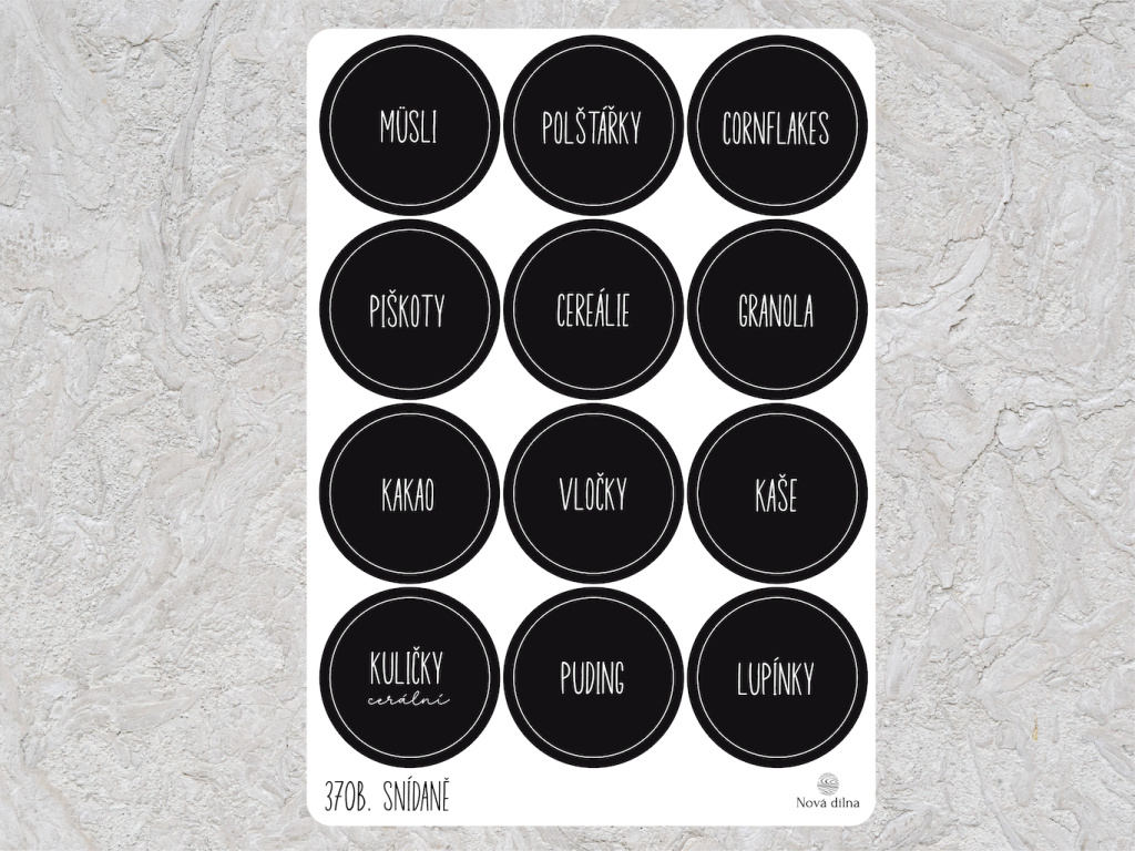 Minimalistické samolepky do kuchyně pro organizaci potravin. Nalepte štítky na jednotlivé krabičky. Díky elegantním samolepkám budete mít o potravinách přehled a kuchyně bude vypadat perfektně vyladěně,