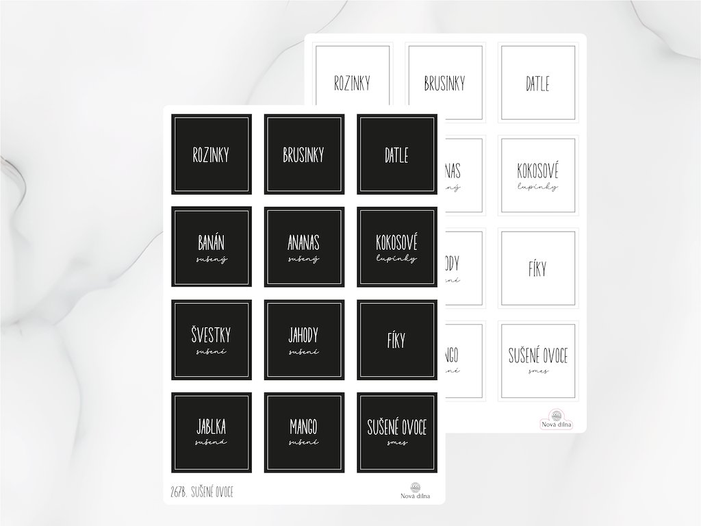 Minimalistické samolepky do kuchyně pro organizaci potravin. Nalepte štítky na jednotlivé krabičky. Díky elegantním samolepkám budete mít o potravinách přehled a kuchyně bude vypadat perfektně vyladěně,