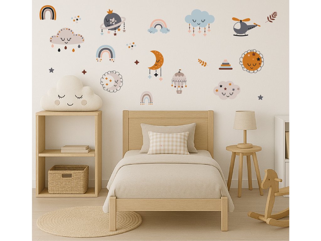 Samolepky rozmístěte po celém pokojíčku a vytvořte tak úžasnou atmosféru.