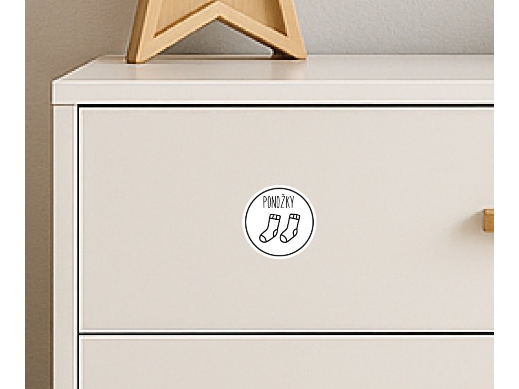 Minimalistické samolepky pro lepší orientaci v oblečení.