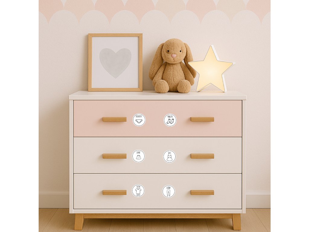 Díky samolepkám se bude vaše dítě lépe orientovat ve svém oblečení a bude tak schopné se o sebe samo postarat. Dopřejte vaší holčičce radost ze samostatnosti, když si sama zvládne nachystat oblečení.