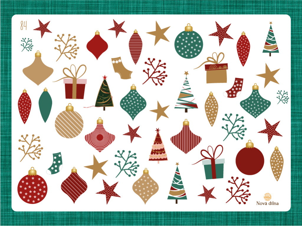 Vysoce kvalitní vinylové samolepky na dozobaní vánočních dárek, vánočních pohlednic, ozdobení oken a dalších projektů. Samolepky jsou vodou otíratelné, drží na papíře, sklu, i na zdi.