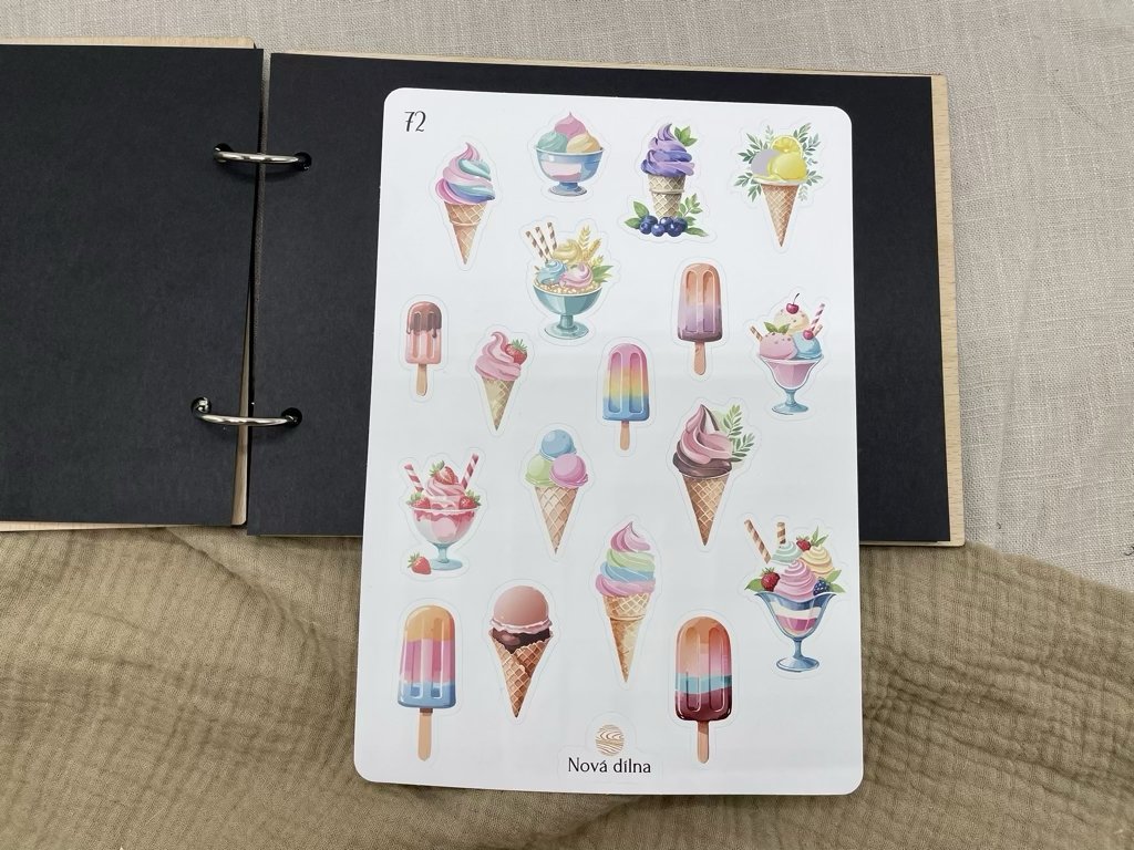 Samolepky můžete využít na dozobaní fotoalba, k polepení lahve na pití, či jakékoliv další tvoření.