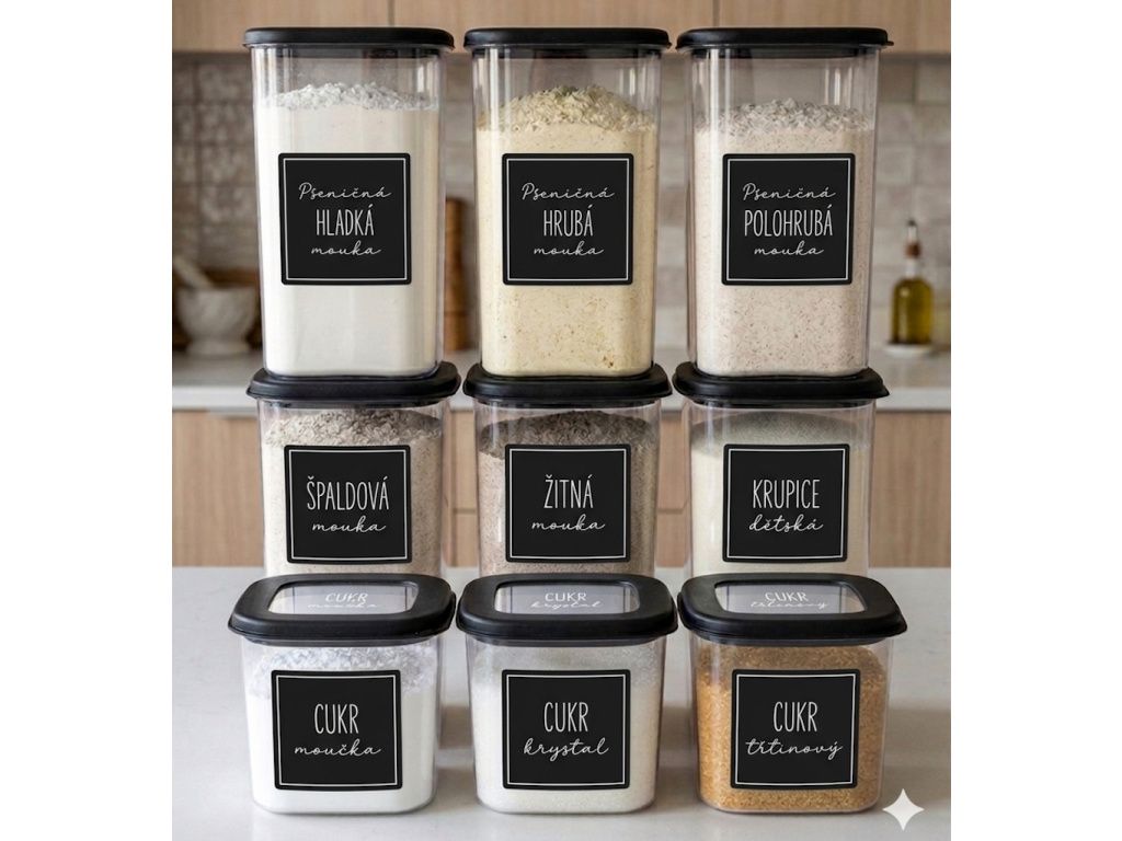 Sada elegantních dóz pro uskladnění potravin, díky které bude vaše kuchyně mnohem přehlednější a hezčí. Vyměňte rozbalené pytlíky s moukou za přehledné designové krabičky na potraviny.