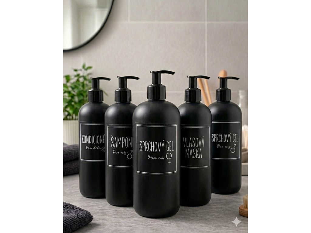 Vyberte si ze sady etikety, které potřebujete a nalepte je na lahvičku. Nalepení je velice snadné. Poté přelijte svou oblíbenou kosmetiku.